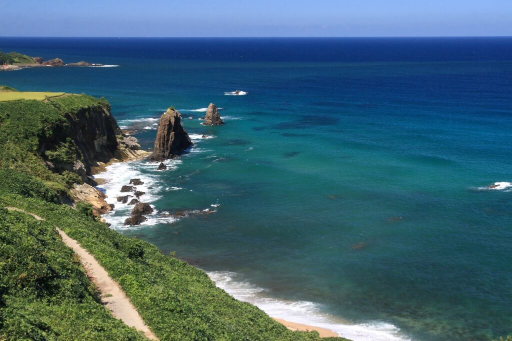 Course 7: Experiencing two different types of coasts, sandy beach coast and rocky coast (Iwado Kaigan Coast Isaribi Park – Otani Kaigan Coast – Uradome Kaigan Coast Pier for Island Cruise).