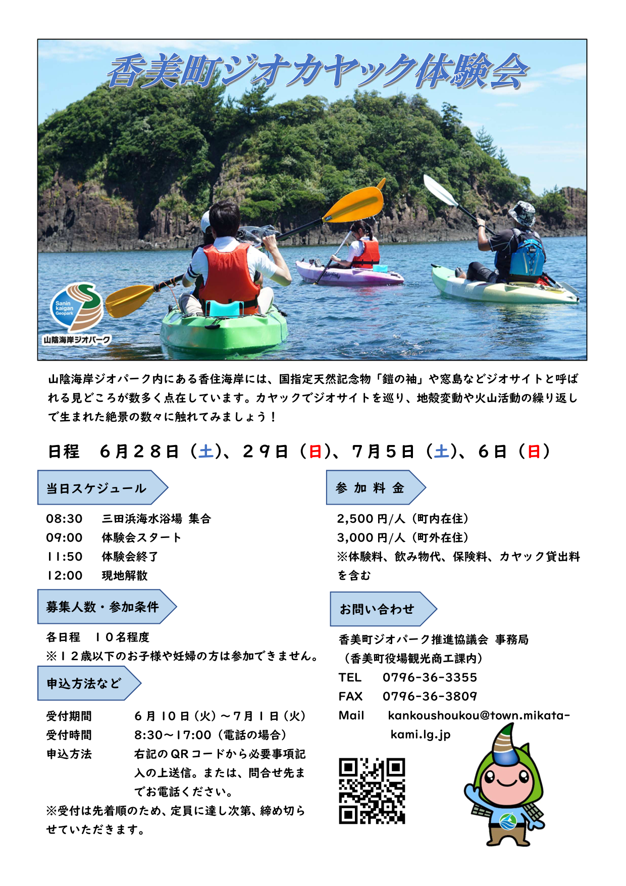 ジオサイトが数多く点在している香住海岸をカヤックで巡るイベントです。
