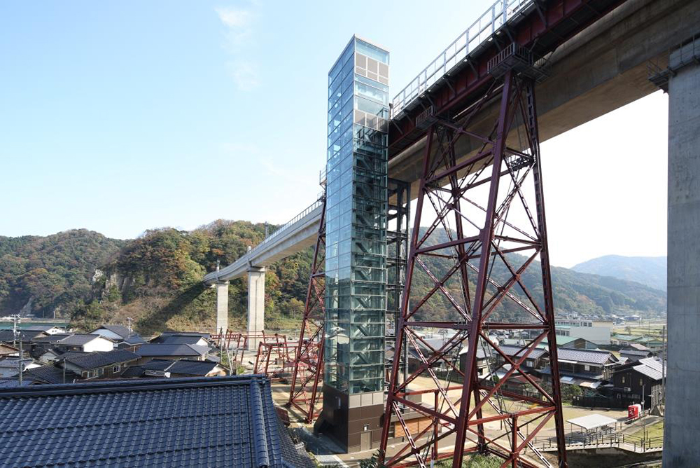 地上40mを走行する鉄道、山陰本線。なぜこんな高所に駅ができた??空の駅まで上るのが大変なら、平成29年にできたエレベーター(愛称:余部クリスタルタワー)が便利です。↓関連情報へリンク↓